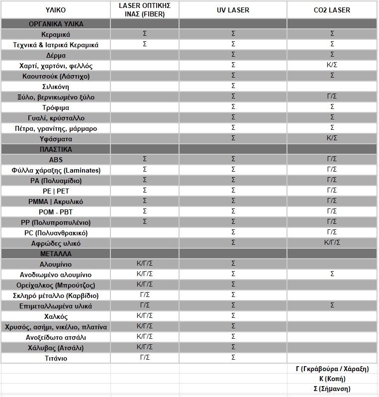 Ενώ τα κλασικά Laser FIBER υπερέχουν στα μέταλλα και τα CO2 είναι ιδανικά για ξύλο, πέτρα ή ακρυλικό, το FIBER UV συνδυάζει τα πλεονεκτήματα και των δύο τεχνολογιών.