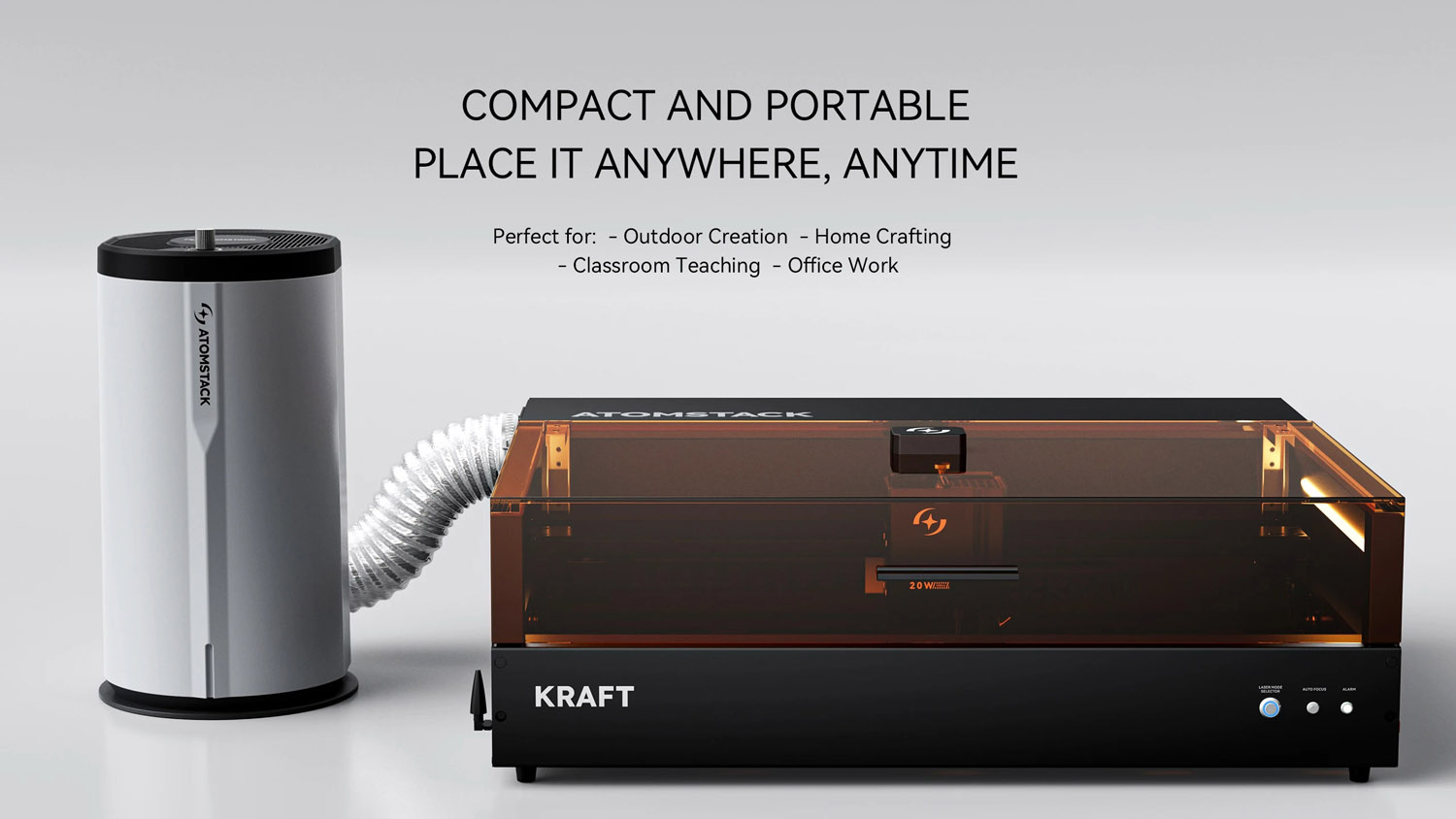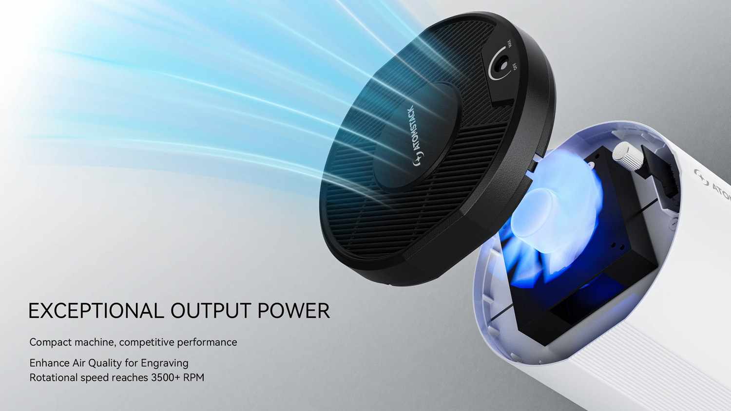 Το μοντέλο AtomStack D3 είναι ένα προηγμένο σύστημα φιλτραρίσματος, ειδικά σχεδιασμένο για χρήστες που δεν έχουν τη δυνατότητα να διοχετεύσουν τα αέρια έξω μέσω σωλήνα. Χάρη σε αυτή την τεχνολογία, ο αέρας σε κλειστούς χώρους όπως γραφεία ή οικιακά εργαστήρια παραμένει απόλυτα καθαρός, ακόμη και κατά την εντατική κοπή και χάραξη.